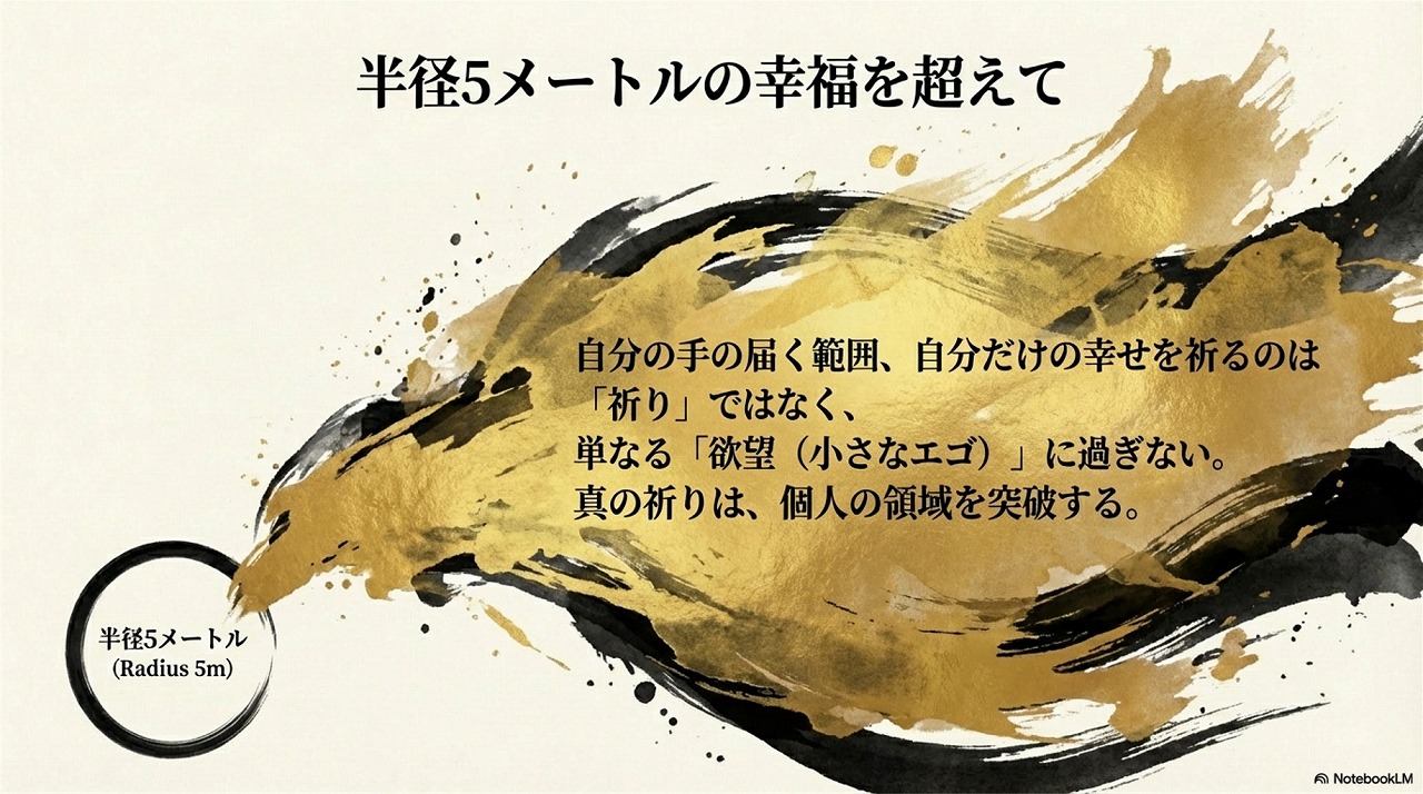 このスライドにある「"半径5メートルの幸福" を求める祈り」とは、