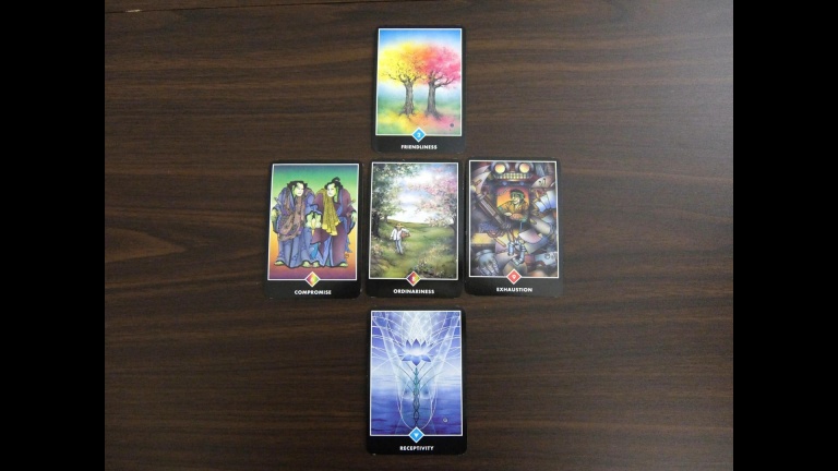 1枚目の「普通であること」という今回のテーマに対し、良い方向性とは自己を埋没させる「妥協」ではなく、自己を保ちつつお互いを尊重する「親しみやすさ」にあるということがカードから教えられます。