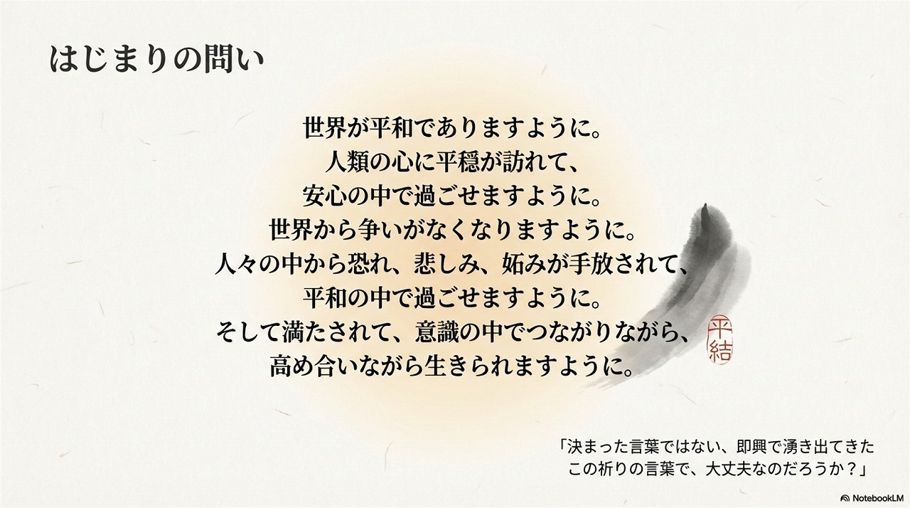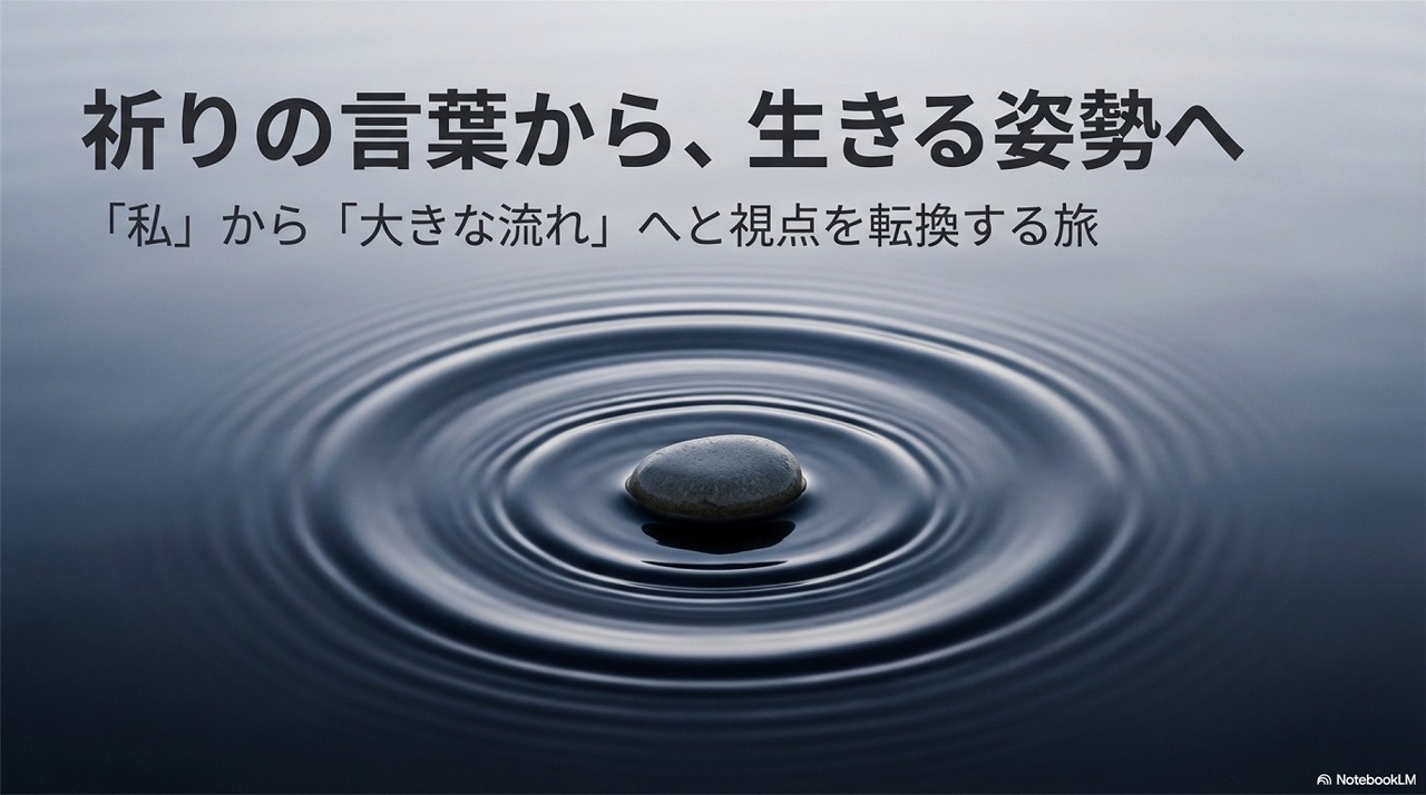 - 祈りの本質は「願望を叶えること」ではなく、大いなるものに自分を委ねる姿勢にある。