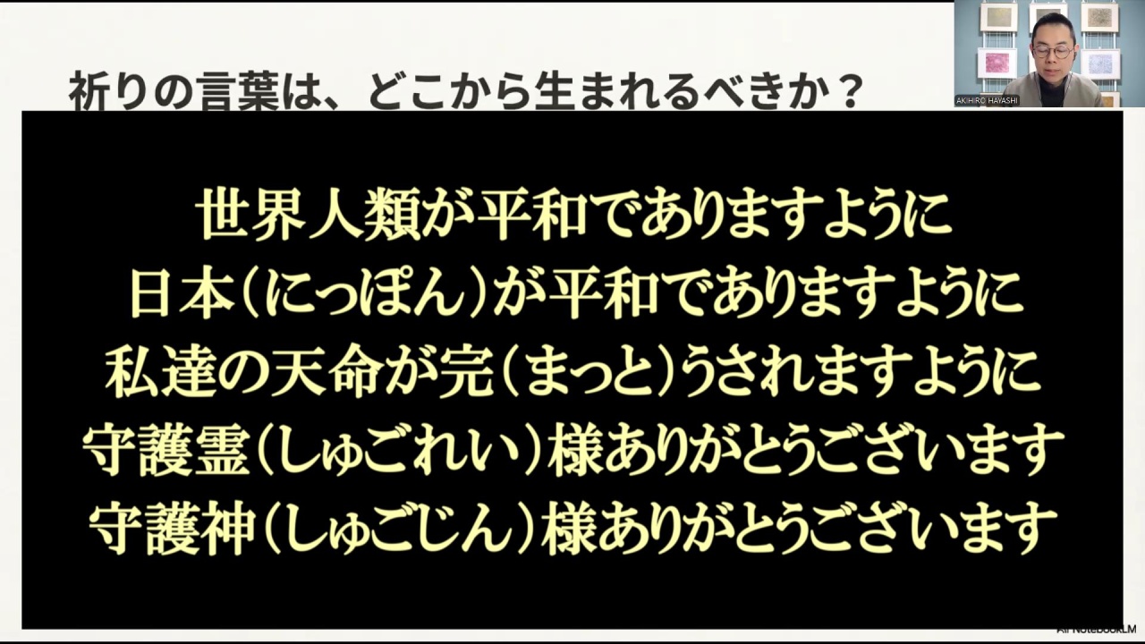 私の過去の発信内容をご参考に、例えばここでよく話している『世界平和の祈り』などを祈っておられるようですが、その中でふと次のような言葉が湧いてくることがあるそうです。