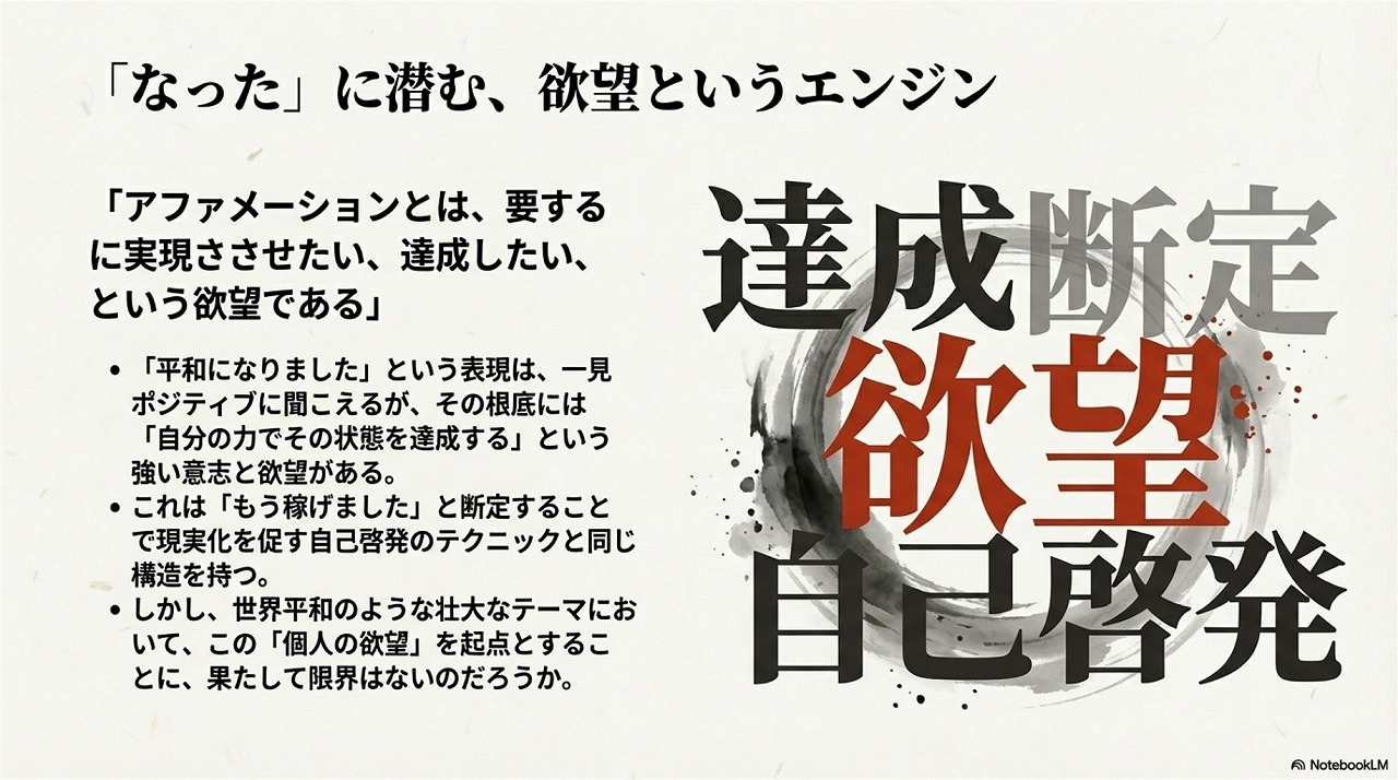 〈断定型〉が完全に悪いとは言わないけど、もしやるならエゴから完全に距離を置けているという大確信がなければ、簡単に欲望に絡め取られてしまう。