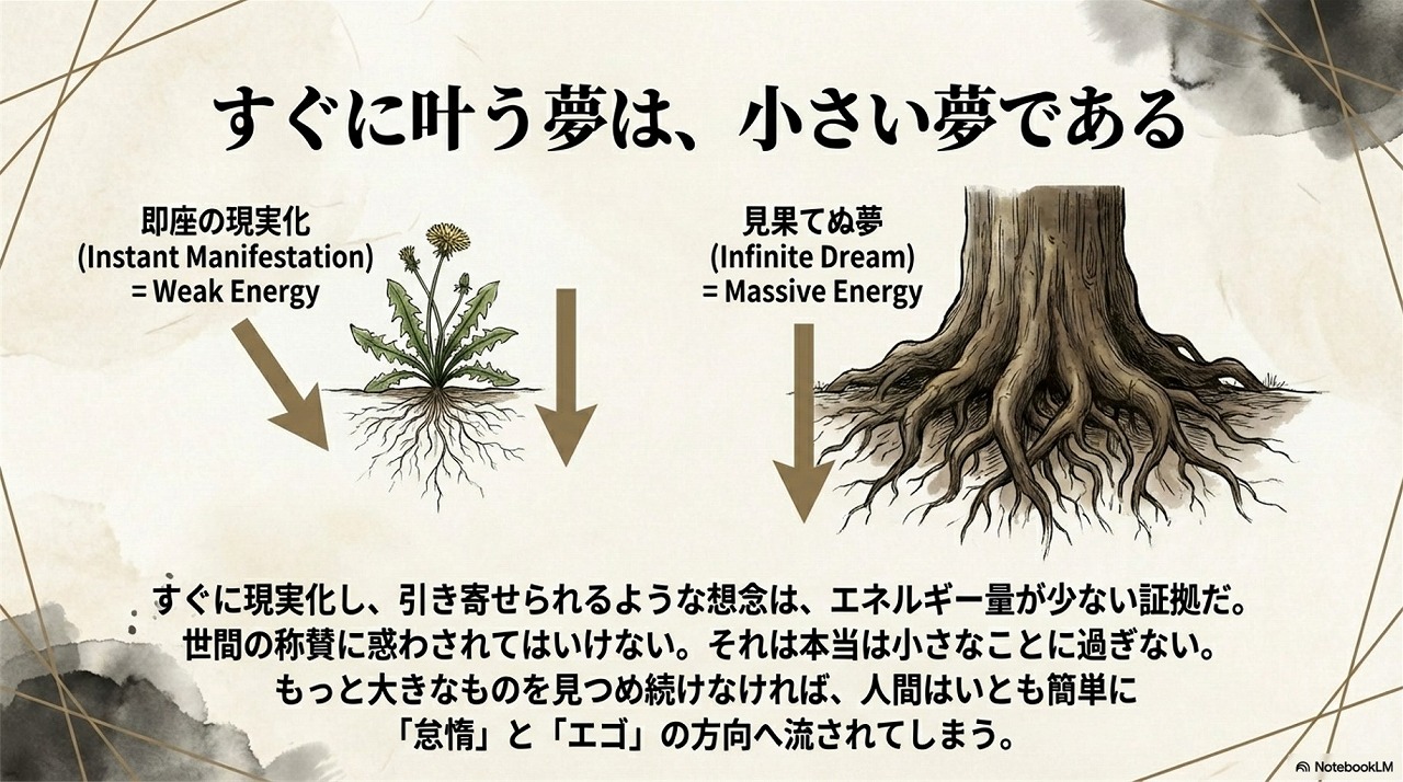 このスライドに書いてある通り、「すぐに叶う夢は小さい」んですよ。