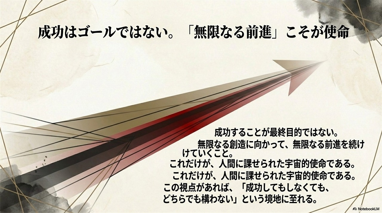 真の成功とは、単なる結果ではなく「無限なる前進」そのものです。