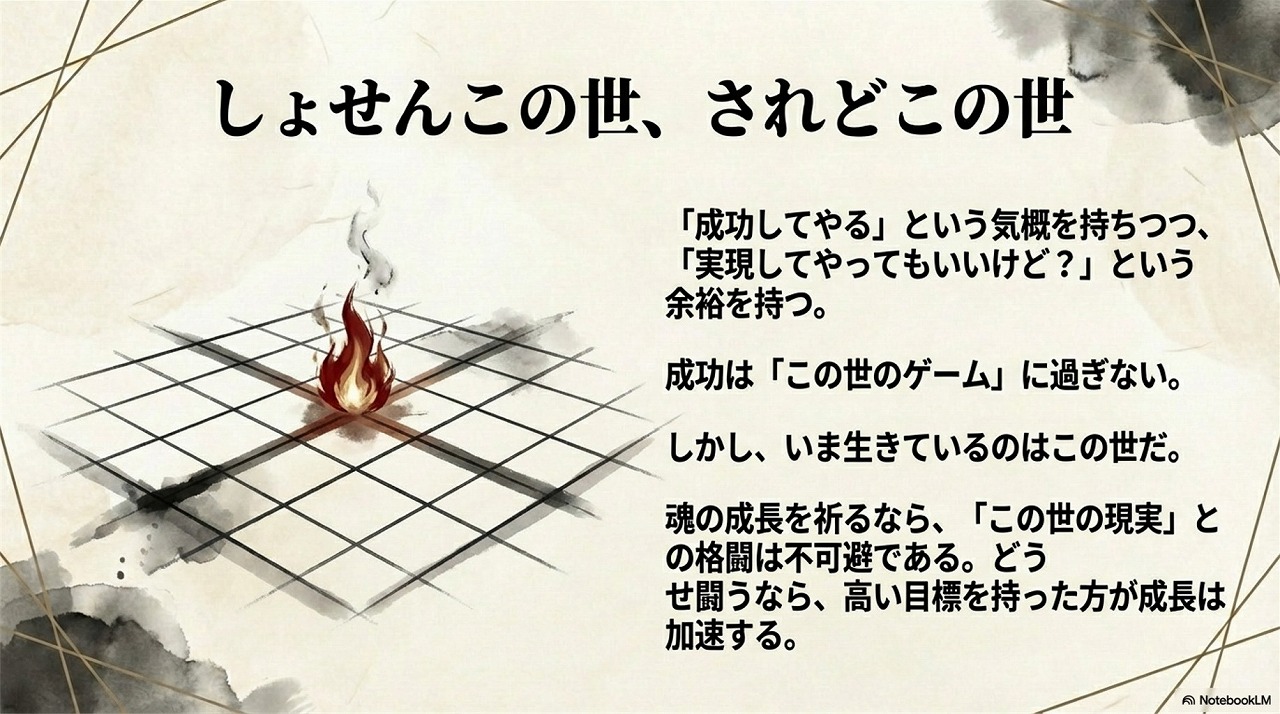 ここでのパラドックス(矛盾)とは、「しょせんこの世のこと」と現象世界を突き放しながらも、魂の成長のためにあえて「この世の成功」を貪欲に求めていく二律背反の姿勢のこと。