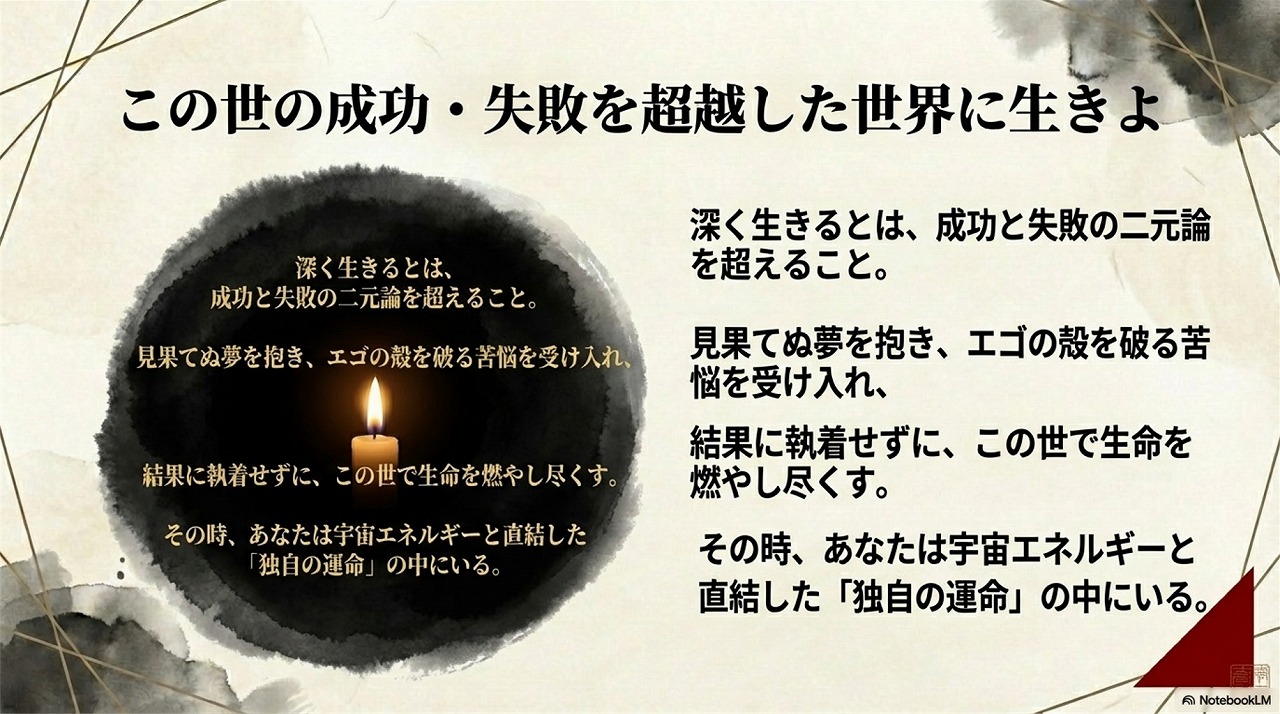 それに死ぬまで挑戦し続けることが、霊性としての人間の生き方であり、真の成功なんです。
